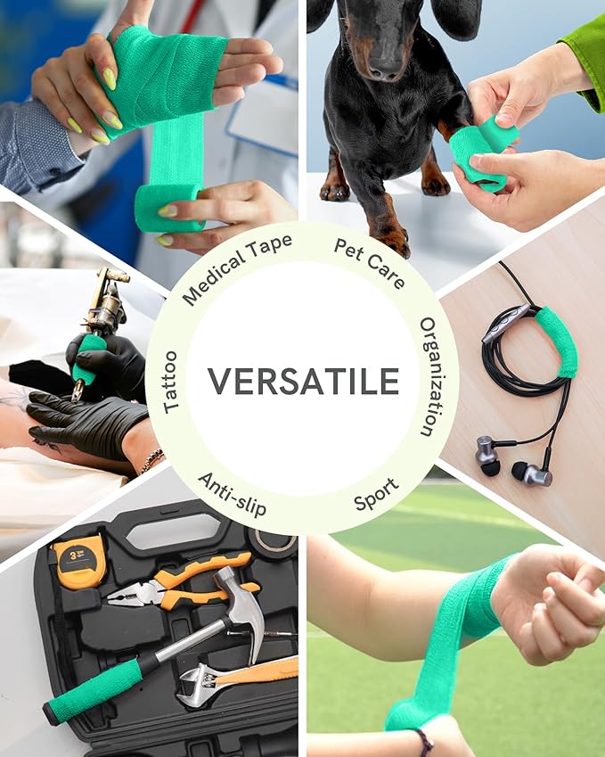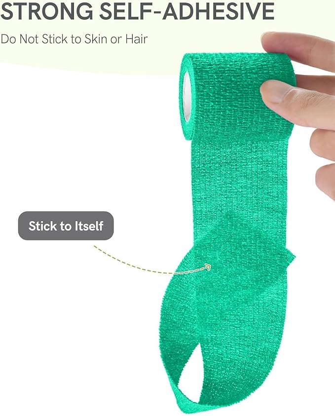 FriCARE Self Adhesive Bandage Wrap, Medical Tape in First Aid Kit, Cohesive Bandages for Wounds Sport Vet, FSA/HSA Eligible, 2 Inches X 5 Yards 6 Rolls, Teal