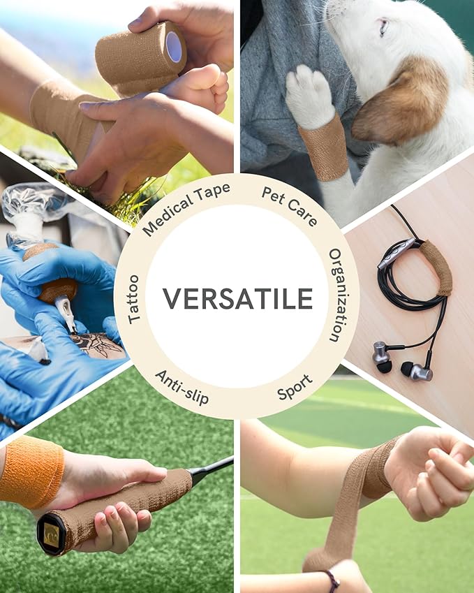 - SELF-ADHESIVE DESIGN - These elastic bandages are far better than the non-adhesive ones as they have self-adhering ability but not adhere to other surface such as hair/ clothing. It is very easy to pull off and perfect for playful children!