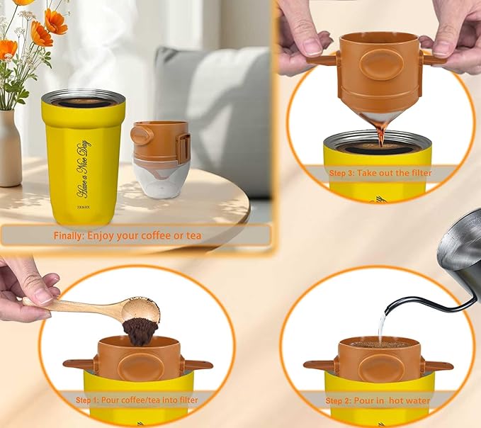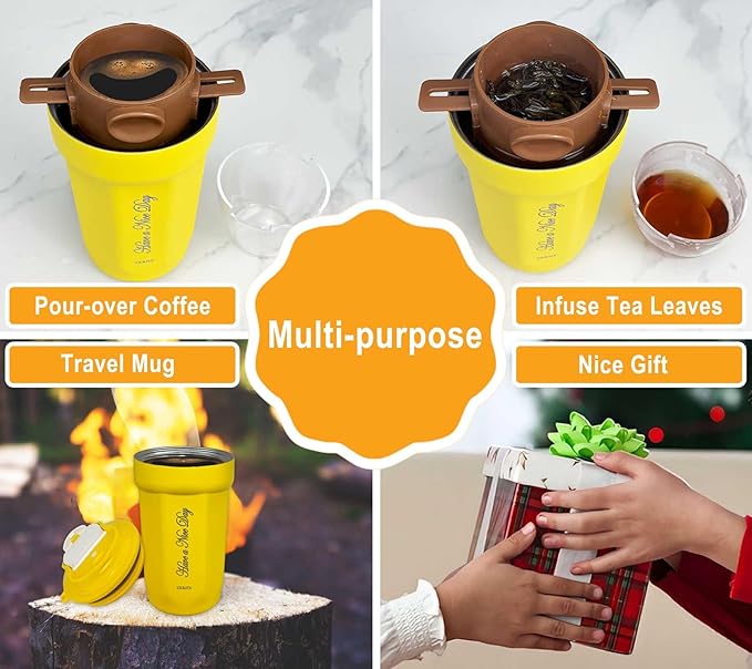 ZK&HX LIFE Pour Over Coffee Maker,Travel Coffee Mug,Insulated Coffee Mug,Camping Coffee Makers,Tea Infuser Mug,Tea Infuser for Loose Leaf Tea,Travel & On the GO
