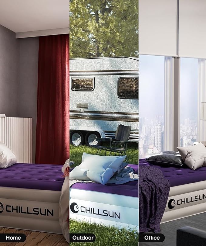 CHILLSUN Queen Air Mattress with Built in Pump, 2025 Upgraded Blow Up Mattress, 18" Luxury Flocked Top Airbed, Inflatable Mattress for Camping Guests and Home 650 lbs Max