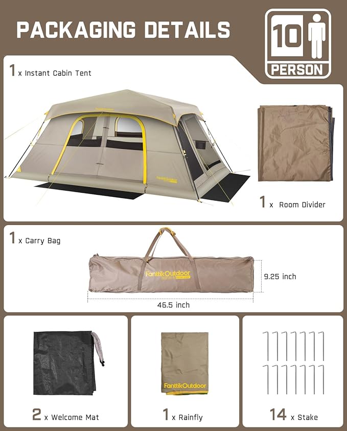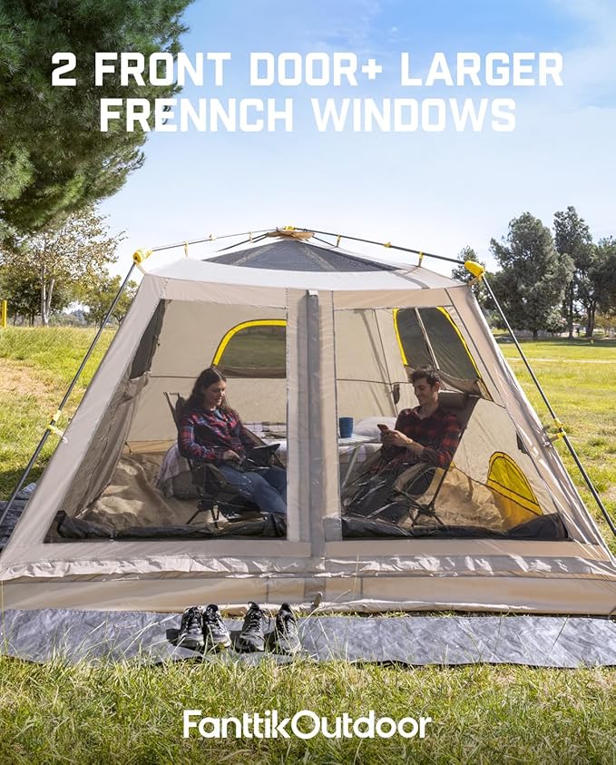 FanttikOutdoor Camping Tent, Lightweight 8/10 Person Instant Cabin Tent Setup in 60 Seconds with Rainfly & Windproof, Ultralight with Carry Bag for Family Camping & Hiking, Upgraded Ventilation