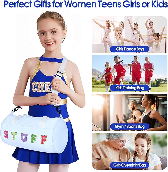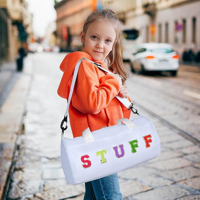 - 【Glitter Chenille Patches Duffle Bag】: The small stuff duffle bag is stitched with personalised chenille letter patches with a colourful glitter border. These colourful chenille letters are stitched tightly and strongly, adding to the uniqueness of the small duffle bag, making it the best stuff storage companion for both kids and adults, suitable for girls or women who love compact gym bags, the perfect stuff duffle bag for enjoying their favourite sports or hobbies.