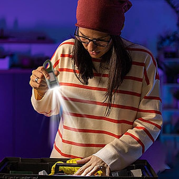 - 【Portable and compact】:The torch has a carabiner for easy hanging in travel bags and pouches. The compact size of the torch makes it easy to carry in a bag without taking up too much space.