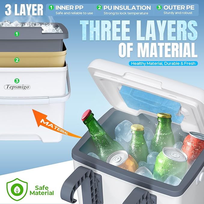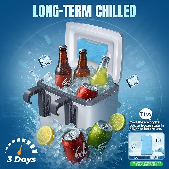 - š§ćIce Crystal Box & Easy to Cleanć - In order to maintain the cooling capacity, we have an extra ice crystal box, cooling can be increased by 30%. You can cool the ice crystal box in advance and put them in the pool cooler so that our drinks and food can be kept cold and fresh for a longer time. Rinse with a hose or wipe with a damp cloth ā no complicated maintenance is needed. (Tips: Cool the ice crystal box to freeze state in advance before use. Please put it in the cooler when using.)