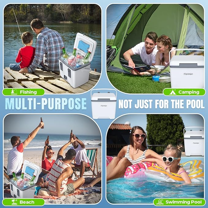 - š§ćMulti-Functional Cooler & Multiple Scenesć - While great for poolside enjoyment. This pool accessories can also be used for picnics, camping trips, or any outdoor adventure where you need to keep drinks and snacks cool. Pool Party Essential, Outdoor Gatherings, Compact small cooler hard shell for RVs, boats, or camping trips. Bring endless summer vibes throughout the summer.