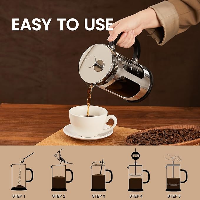 - Easy to Clean: Designed for convenience, the glass carafe easily disassembles for thorough cleaning; certain parts, including the plunger and filter, are dishwasher-safe—making cleanup effortless