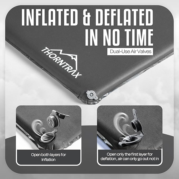 - SLEEP IN COMFORT - The self inflating pad for camping keeps you away from the uneven ground and hard rocks. The extra thick camping pad is made to give you an hotel-like experience in the open nature!