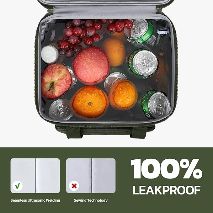 Maelstrom Tactical Lunch Box for Men, 23L Insulated Lunch Bag, Expandable Double Deck Cooler Bag, Lightweight Leakproof Tote Bag With Side Tissue Pocket, Suit For Men and Women, Army Green