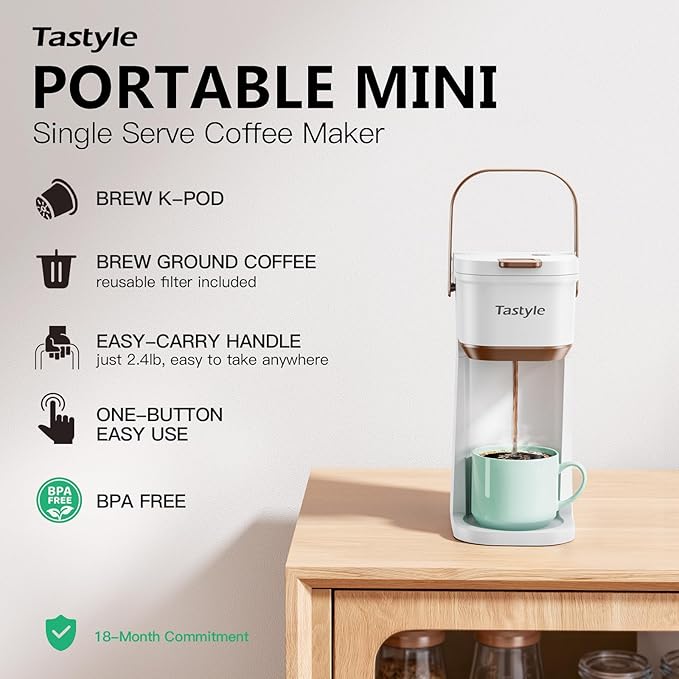 - 12 Oz Visible Water Tank : The reservoir of tastyle one cup coffee maker features markings for 6, 8, 10, and 12 ounces, allowing you to easily control the water volume for your desired coffee strength