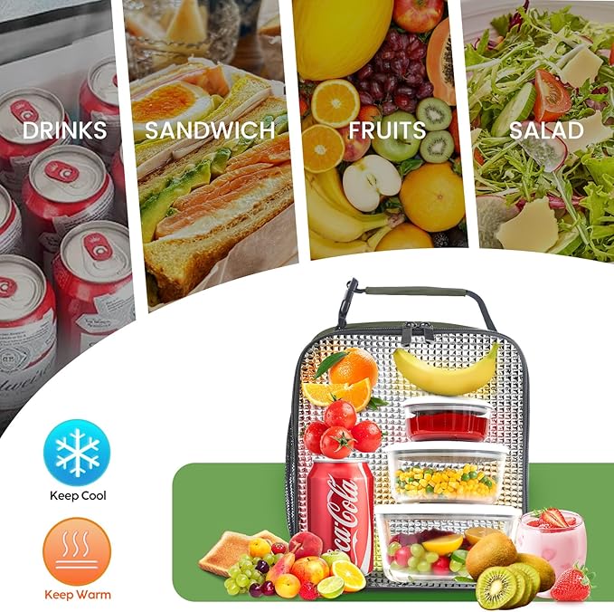 - 【Great insulation】 With a pearl cotton insulation layer and an aluminum film interior lining, lunch bags provide excellent insulation capabilities for both keeping your food warm and maintaining its coolness.