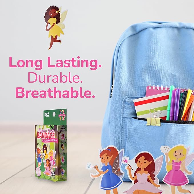 - EASY TO CARRY AND USE: These cute and colorful Magical Fairies children's bandages are easy to take with you for travel, and easy to store in a home first aid kit; these healing bandages are perfect for school, summer camp, camping trips, weekend getaways and more
