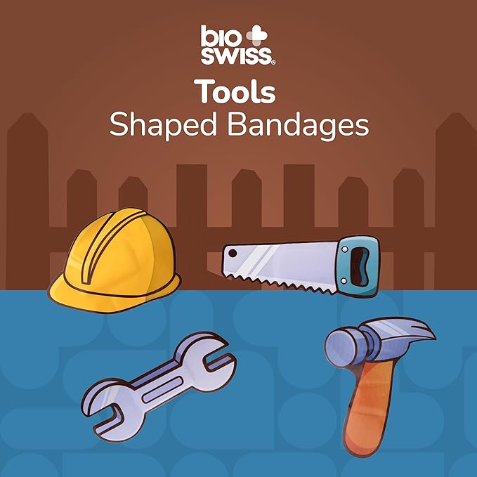 BioSwiss Bandages, Tools Shaped Self Adhesive Bandage, Latex Free Sterile Wound Care, Fun First Aid Kit Supplies for Kids and Adults, 24 Count