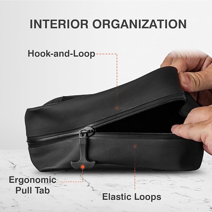 - Large size at 8.5x7.5x3.8 in. the interior features durable elastic loops to securely hold gear in place, along with hook-and-loop material for attaching additional organizers easily.