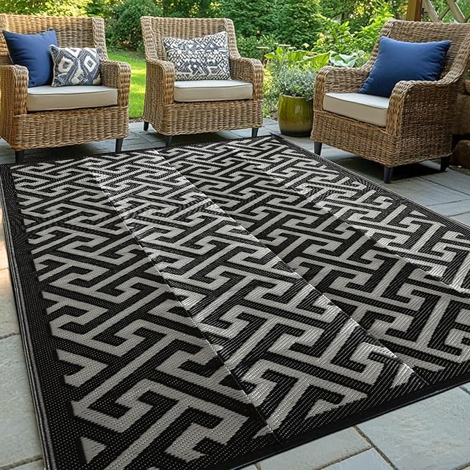 - REVERSIBLE MODERN DESIGN: Our outdoor rug features a reversible design with double-sided patterns, seamlessly blending style and comfort. Available in a variety of beautiful colors and patterns, this outdoor plastic straw rug invites you to create a harmonious outdoor space that reflects your personal taste. The soft texture offers a luxurious walking experience, combining aesthetic appeal with inviting comfort in every step