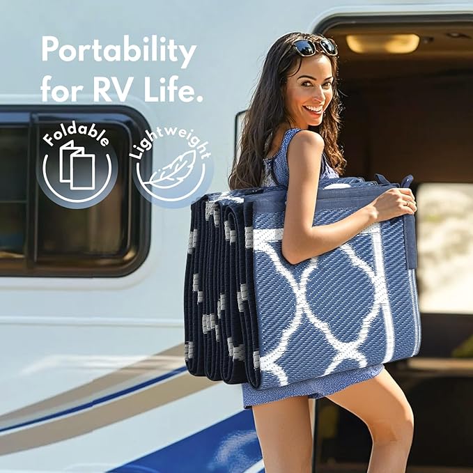 - Lightweight & Portable: Designed for convenience, this outdoor rug is lightweight and compact, making it the ultimate travel companion for all your outdoor adventures. Whether you're camping, picnicking, or enjoying a day at the beach, this outdoor patio rug can be easily rolled or folded for effortless storage and transport. Its portable design ensures that comfort and style are always within reach, wherever your journey takes you