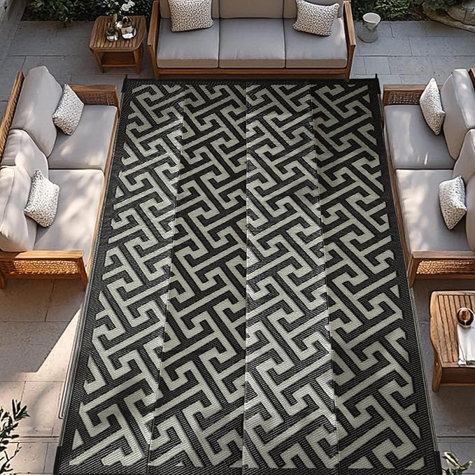- REVERSIBLE MODERN DESIGN: Our outdoor rug features a reversible design with double-sided patterns, seamlessly blending style and comfort. Available in a variety of beautiful colors and patterns, this outdoor plastic straw rug invites you to create a harmonious outdoor space that reflects your personal taste. The soft texture offers a luxurious walking experience, combining aesthetic appeal with inviting comfort in every step
