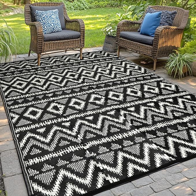 - REVERSIBLE MODERN DESIGN: Our outdoor rug features a reversible design with double-sided patterns, seamlessly blending style and comfort. Available in a variety of beautiful colors and patterns, this outdoor plastic straw rug invites you to create a harmonious outdoor space that reflects your personal taste. The soft texture offers a luxurious walking experience, combining aesthetic appeal with inviting comfort in every step