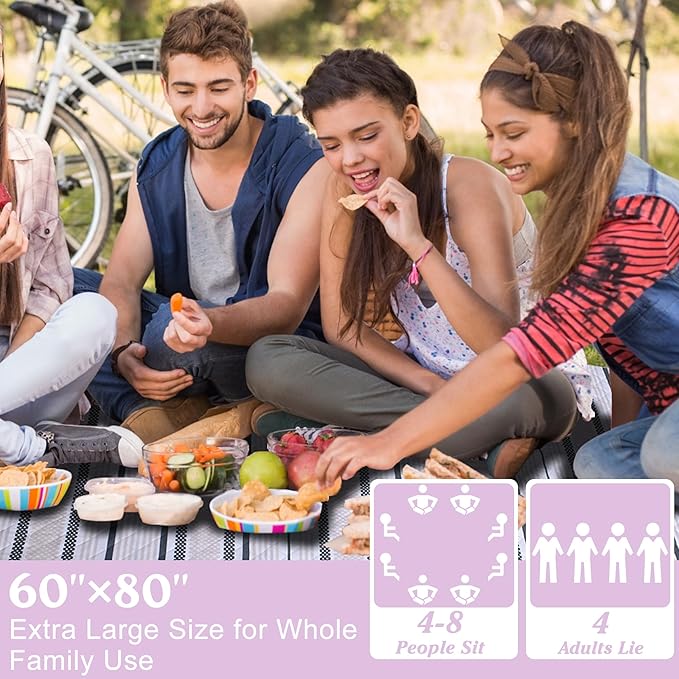 - Spacious enough for family reunions, beach parties, or park picnics, this extra-large blanket offers ample room for 8 people. The timeless plaid design elevates your outdoor style, while its versatility shines for camping, concerts, backyard BBQs, or indoor playdates and yoga sessions.