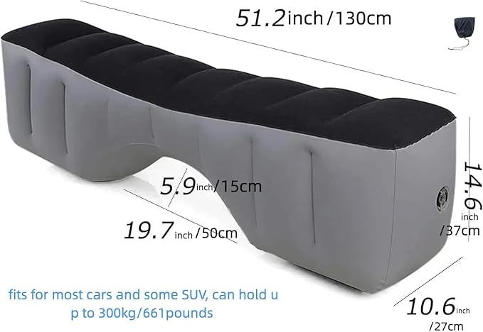- Dimensions: 130*27*38cm(51.2*10.6*15inches), Max load: 661 pounds(300kg), fits for most cars, household sedan, some SUV, etc. It can hold up to 300kg(661 pounds about). The package includes 1 car air mattress gap filler, very suitable for resting in the car and outdoor travel