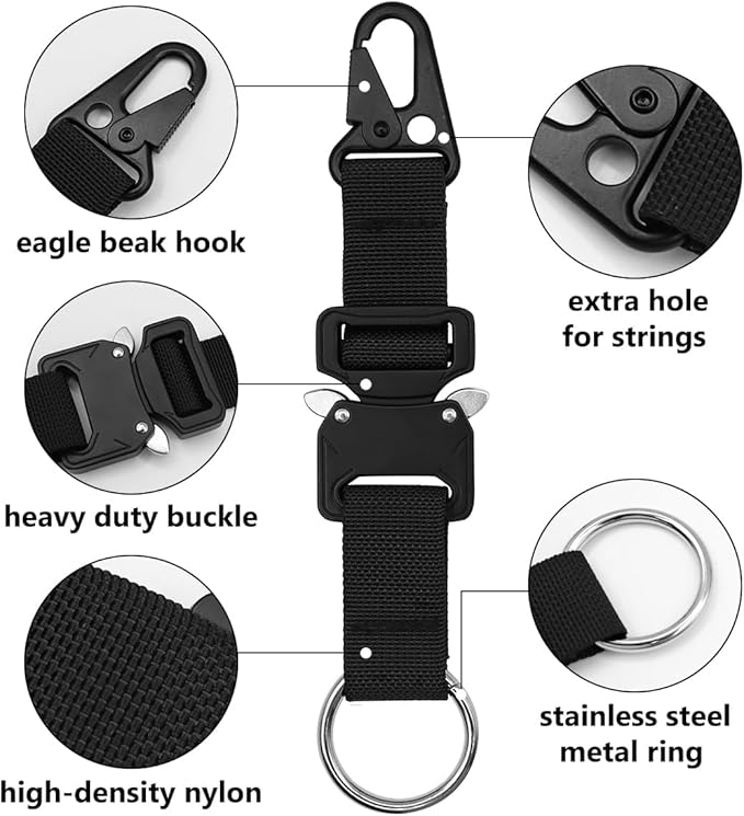 - Heavy Duty Design: Made from high-strength polypropylene webbing and a military-grade metal buckle, our tactical keychain can withstand the toughest conditions thanks to its high-quality, 400lb break strength