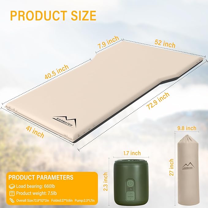 - Enjoy the Best Sleep:fortunately for anyone who likes a good night's sleep, the luxury of a foam mattress offers a high level of comfort and warmth. Its expansive 79 x 52-inch plush sleeping surface puts a very insulating, two-inch barrier between you and the ground. The M KARMATER car sleeping pad will ensure a very comfortable night outside, any time of year.