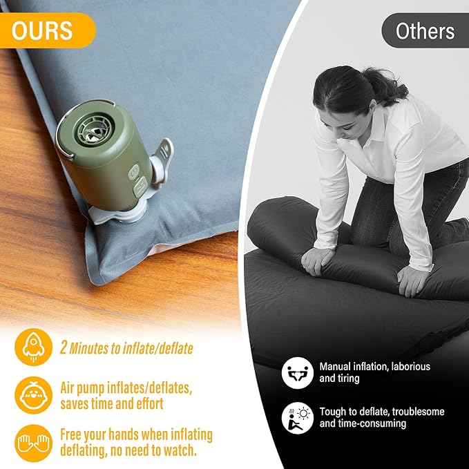 - Warm Enough for All-season Use: Inflatable Car camping mattress with soft fabric top and high-density foam to provide ample cushion, insulation and comfort. If you're a cold sleeper, the R-value is 9.0, meaning you will not feel the cold from the ground/car through your mattress.