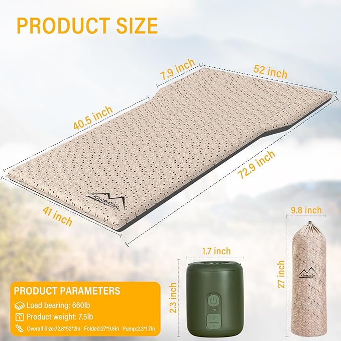 - Enjoy the Best Sleep:fortunately for anyone who likes a good night's sleep, the luxury of a foam mattress offers a high level of comfort and warmth. Its expansive 79 x 52-inch plush sleeping surface puts a very insulating, two-inch barrier between you and the ground. The M KARMATER car sleeping pad will ensure a very comfortable night outside, any time of year.