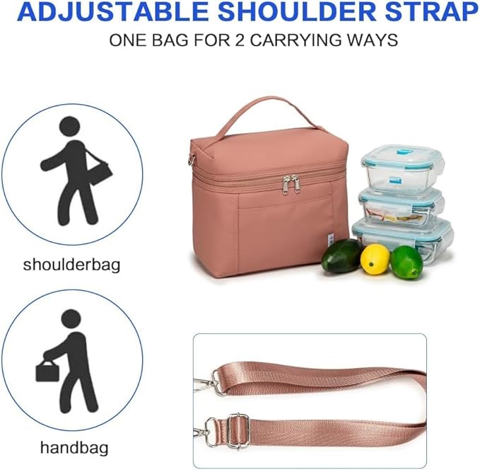 - Portable and cute design: this lunch bag is made of waterproof nylon outside, it’s lightweight and tear resistant; With two ways of carrying- top handle and cross-body by a detachable and adjustable long shoulder strap.