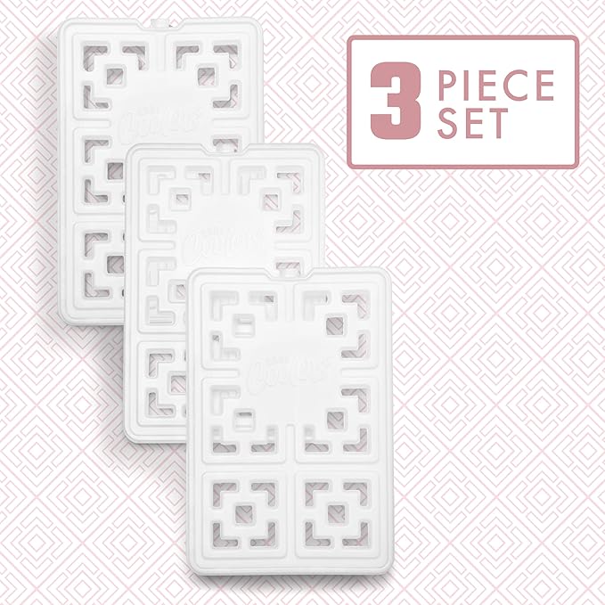 Cool Coolers Fashion Ice by Fit & Fresh, 3 Pack XL Slim Ice Packs, Unique Ice Pack Design for Womens Lunch Bag, Space Saving Reusable Ice Packs for Lunch Boxes, Cooler Ice Packs, Pearl White, 3PK