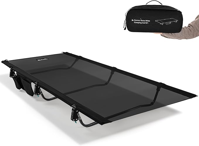 Gonex 31.5" Extra Wide Camping Cot with Breathable Mesh Fabric Supports 350lbs, Portable Ultralight Folding Cot Bed for Adults Travel, Beach, Home, Sleeping (Mesh)
