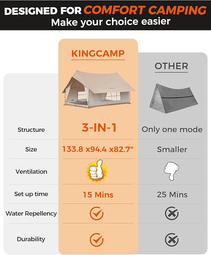KingCamp Camping Tent 6-8 Person, Weatherproof Hot Tent Large Family Cabin Tents with Stove Jack, Waterproof & Windproof for Family Camping & Outdoor Parties