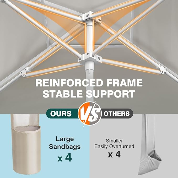 - Quick and Easy Setup: Pop up beach cabana, easy to complete the tent body set up, 6.56-8FT free height adjustment, then 4 sandbags and 2 kinds of ground stakes to reinforce the beach umbrella cabana. Only one person can do it, make the outdoor beach day easy and comfortable!