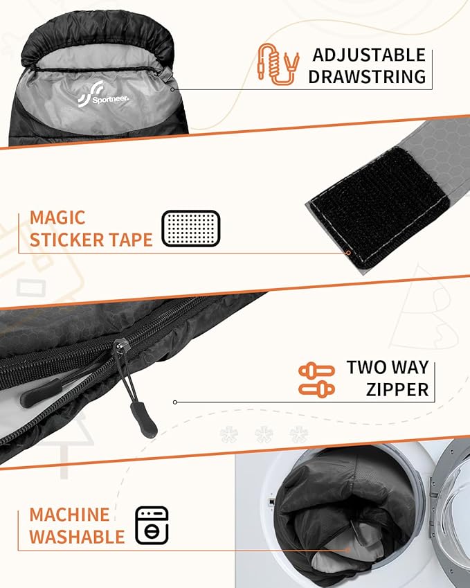 Sportneer Sleeping Bags for Adults, Warm & Cold Weather Sleeping Bag for Adults Kids Boys Girls - Lightweight Compact Camping Gear Equipment, Traveling, Backpacking, Hiking