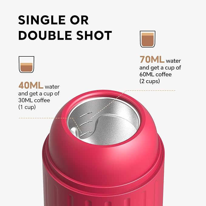 - ☕ 【 Electric Portable Espresso Machine】With rechargeable battery, fast heating, one-button extraction, no need to press manually. This rechargeable portable coffee machine is the best choice to enjoy up to 60ml of real espresso at home, in the office and on the go