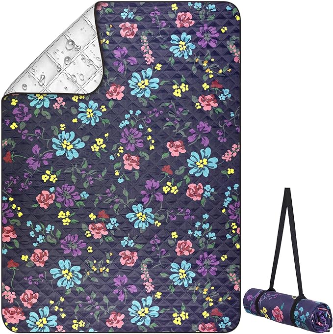 - Soft & Thick Three -Layer Structure: Our picnic blanket is crafted with a top layer of comfortable polyester fabric, a middle layer filled with plush microfiber, and a waterproof polyester film bottom, this three-layer construction, enhanced by high quality sewing technology, offers unmatched comfort and durability, ensuring that your picnic experience is as enjoyable as it is luxurious