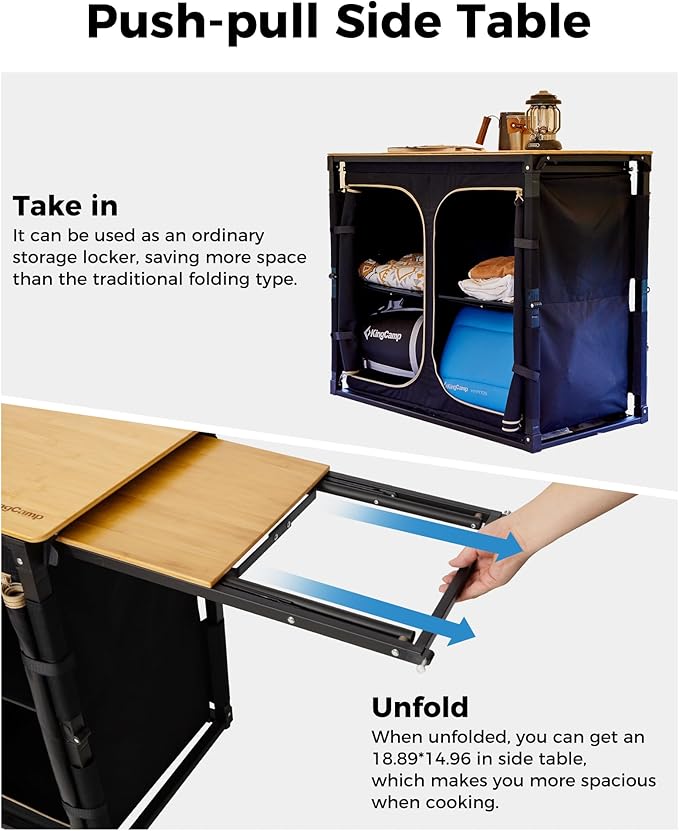 - Ideal for RVs, Vans, and Family Adventures: Whether you’re cooking in your RV, van, or enjoying a family camping trip, this versatile kitchen table has the space and functionality to make outdoor cooking effortless. Perfect for large groups and extended trips.