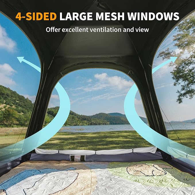 - Superior Ventilation & Versatility: The camping tent features two doors and large mesh ventilation windows for excellent airflow, while also offering great views. This makes it perfect for use as a screen house or sun shelter during warm-weather outings.