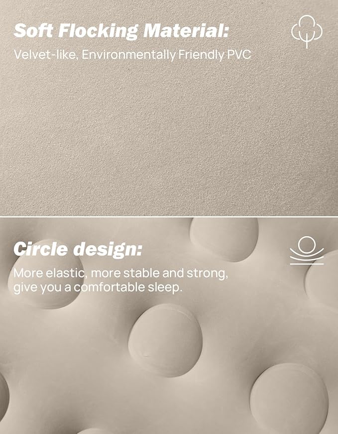 - 【Anti-Leakage】: Our 3.0 Upgraded thickened air cushion enhances stability and comfort, easily supporting the weight of two adults. The surface and pillows are crafted from soft, velvet-like flocking fabric, providing a luxurious, cushy feel for a restful experience.