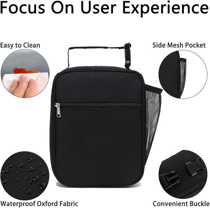 - Easy to Clean: Featuring a wipeable interior and the stylish "lunch" logo,this lunch bag is designed for convenience.Whether you’re on the go or at your desk,spills and messes are no hassle—just wipe clean and carry on