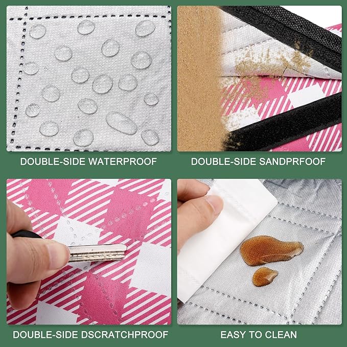 - 5 LAYER DESIGN-EASY TO CLEAN: Better Waterproof, Sandproof &Scratchproof because we add an extra layer of protective film on the top and bottom. And the picnic blanket backing is made of high-quality Aluminium Film backing waterproof material to prevent it from getting wet on wet lawns or beaches. Picnic mats are easy to clean and care for, easily shaking off and wiping away dirt, mud, wet grass and sand.