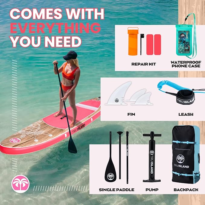 TRUISLAND Inflatable Paddle Board, Stand Up Paddle Board with Backpack, Non-Slip Thickened Deckpad, Waterproof Phone Case, Leash, Paddle, Hand Pump