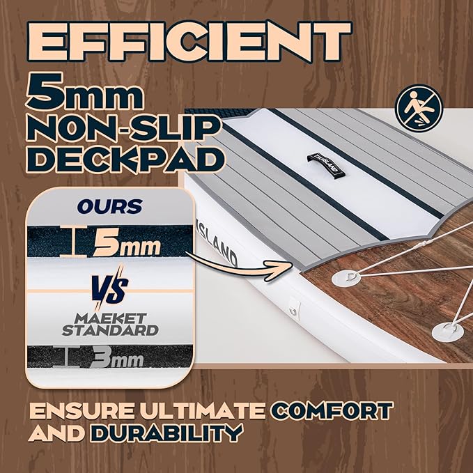 - Thickened deckpad:We used premium 5mm deckpad foam to ensure ultimate comfort and durability for our boards.Relax the feet to make body more comfortable and not too painful to fall on the board. Most company’s use much thinner deckpad but this is a testament to our quality and not cutting corners in every step of our board design