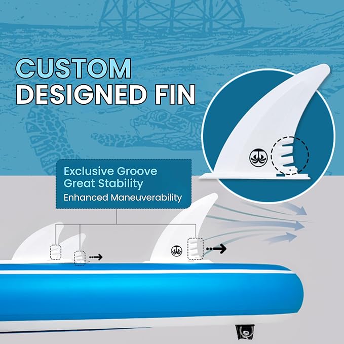 - Complete accessories:This package includes the ISUP, adjustable 100% aluminum paddle with fiberglass blade , high pressure pump, backpack-style carry bag with plenty of storage, 10ft coil leash, 3 removable easy-click nylon fins , and a repair kit.The detachable fin provides greater traction, overall speed and control to ensure the stability