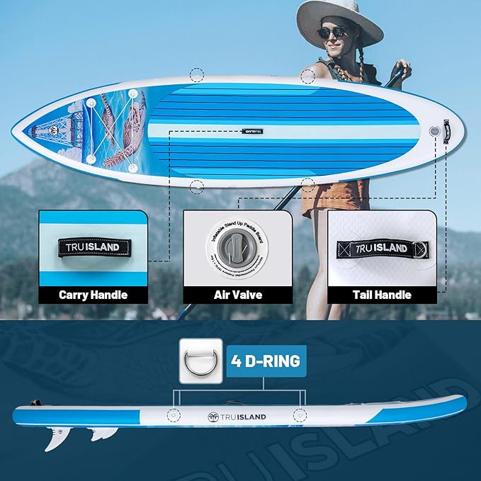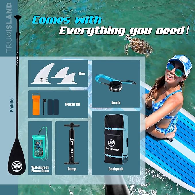 TRUISLAND Inflatable Paddle Board, Stand Up Paddle Board with Backpack, Non-Slip Thickened Deckpad, Waterproof Phone Case, Leash, Paddle, Hand Pump