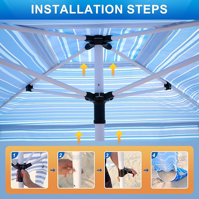 - 🌞 UPF 50+ All-Day Protection: Detachable walls block sun, wind, and provide privacy. Height-adjustable alloy pole ensures customizable shade. Stay cool under 50+ UV protection for 4-6 people.
