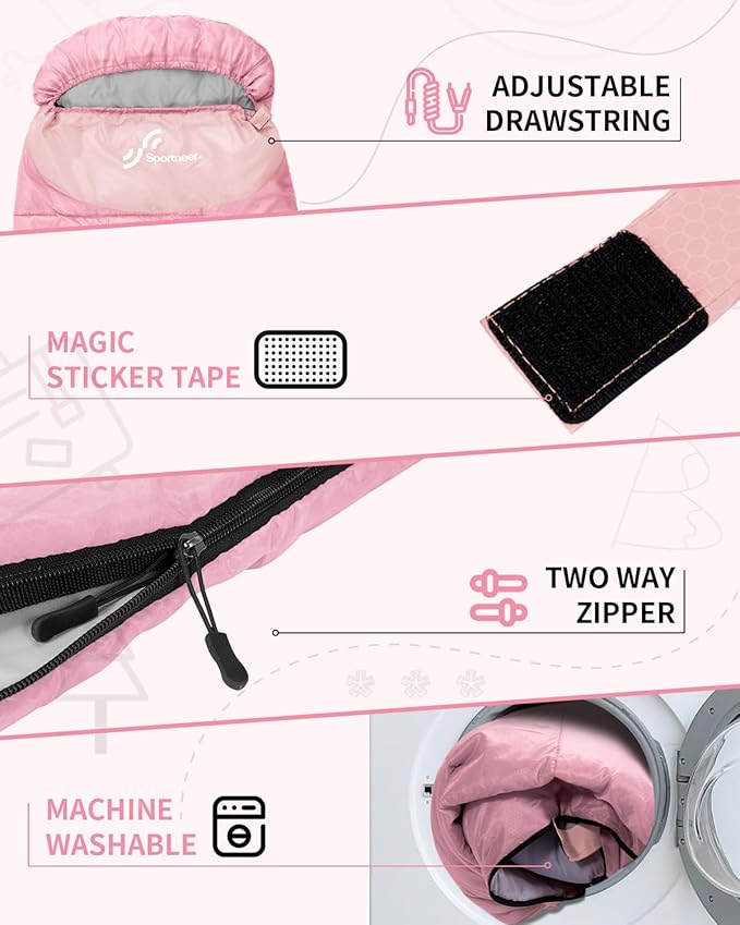 Sportneer Sleeping Bags for Adults, Warm & Cold Weather Sleeping Bag for Adults Kids Boys Girls - Lightweight Compact Camping Gear Equipment, Traveling, Backpacking, Hiking