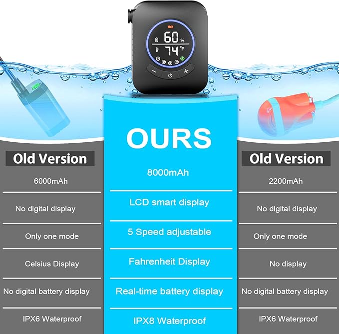 - 【Advanced Real-time Digital Display】 Portable shower pump is equipped with a smart LCD digital display, which can monitor the battery power and water temperature in real time, allowing you to see it at a glance. When camping and showering, you can keep informed from the screen to prevent scalding and power outages. (The pump does not have a heating function.)