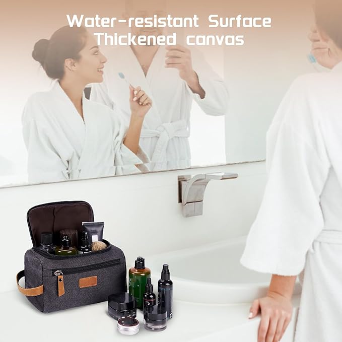 Travel Toiletry Bag for Men, Large Water-resistant Shaving Bag Toiletries Organizer, Canvas Dopp Kit, Multi-functional and Stylish, Bathroom Dopp Kit Shaving, Ideal for Travel, Camping, Gym- Black