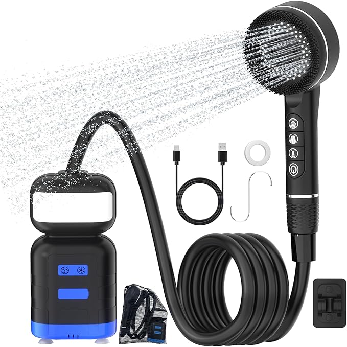 Upgrade Portable Camping Shower, 8000mAh Rechargeable Electric Shower Pump with Massage Shower Head and Multiple Spray Modes for Camping, RV Travel, Beach, Pet Bathing, Car Washing