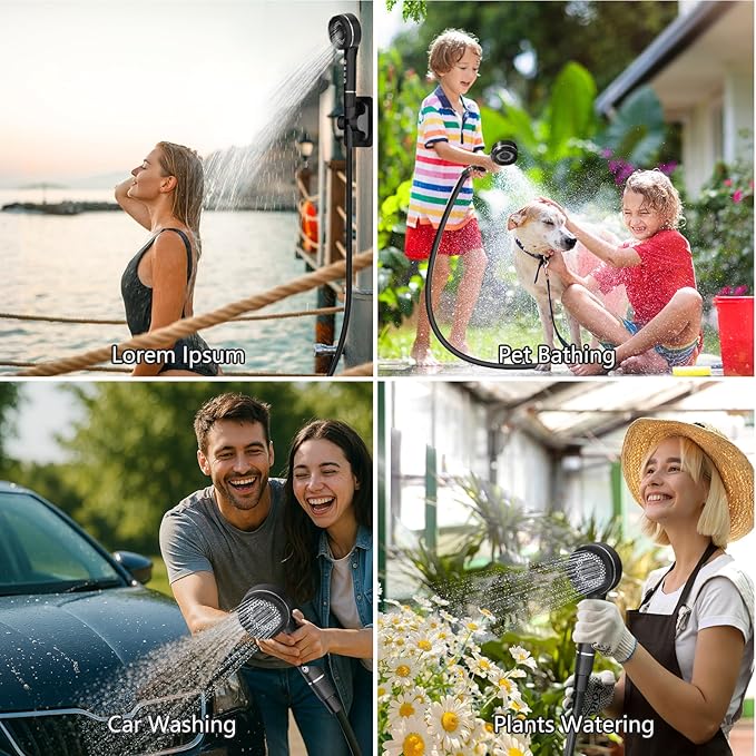 - 【Multi-purpose Use】 Suitable for camping, RV travel, beach, swimming pool, pet bathing, car washing and other scenarios. No matter where you are, you can easily enjoy the fun of showering.